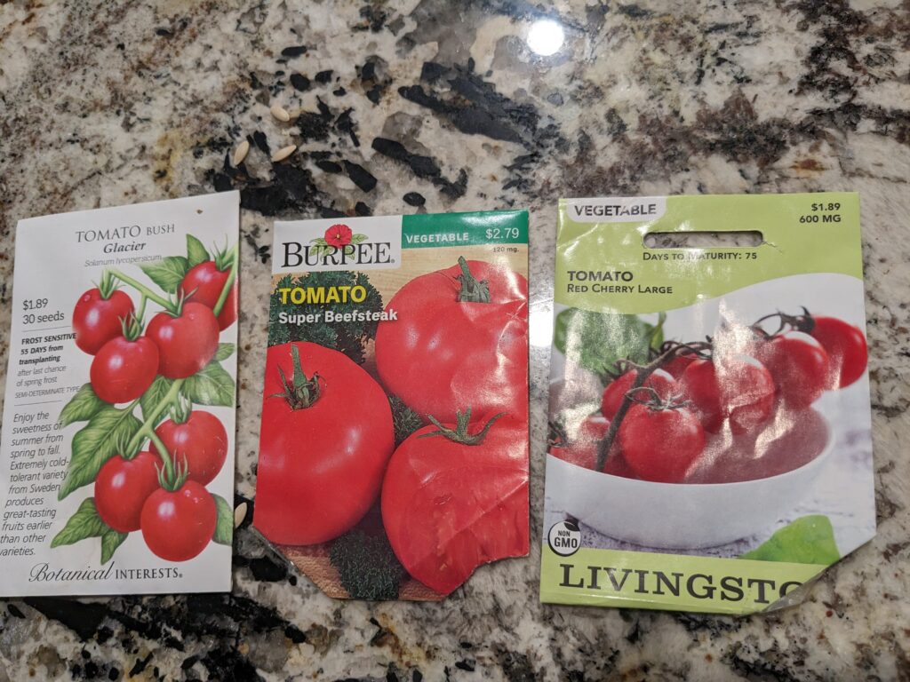 Over the weekend I planted three different varieties of tomato plants. The process is exactly the same as what I did when I planted the peppers. Generally I do 2 seeds per cube but if I have a lot I sometimes triple up. I expect to see sprouts in a couple of weeks. Until then they will be warm and safe on top of my refrigerator. I had a great harvest of the beefsteak last year in 5 gallon buckets.